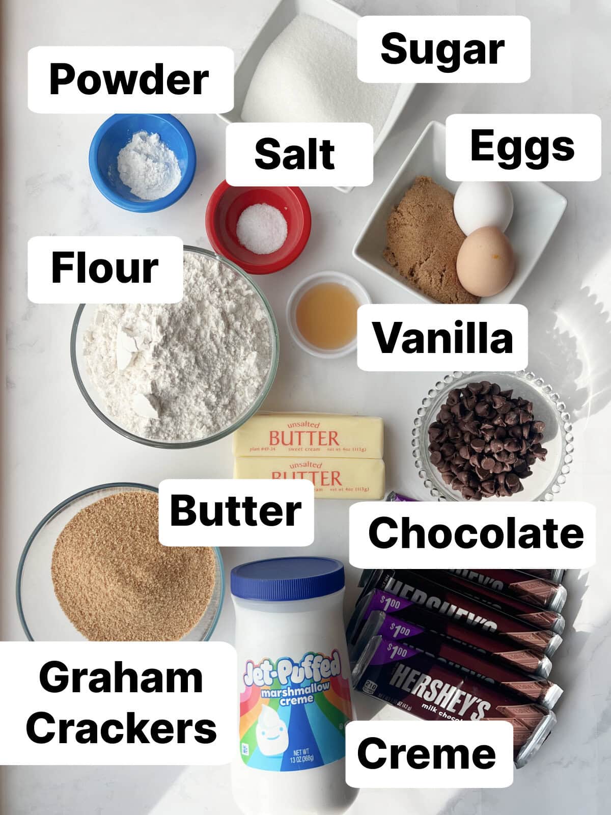 - Hershey Bars: We like the bit Hershey bars for this recipe because we like a really thick layer of chocolate in the center. However, if you can’t find those, you can use the candy bar-sized Hershey bars as you’d find at the checkout stand.ย