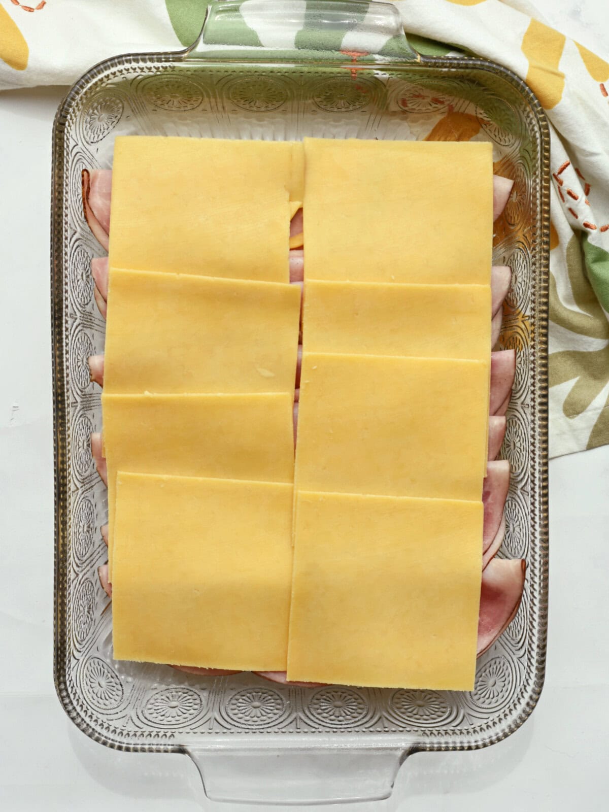 - Smoked Gouda cheese: I prefer slices since they lay so nicely over the ham, but you can use shredded cheese, too. Either works great!